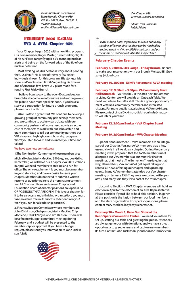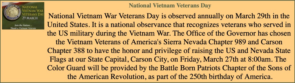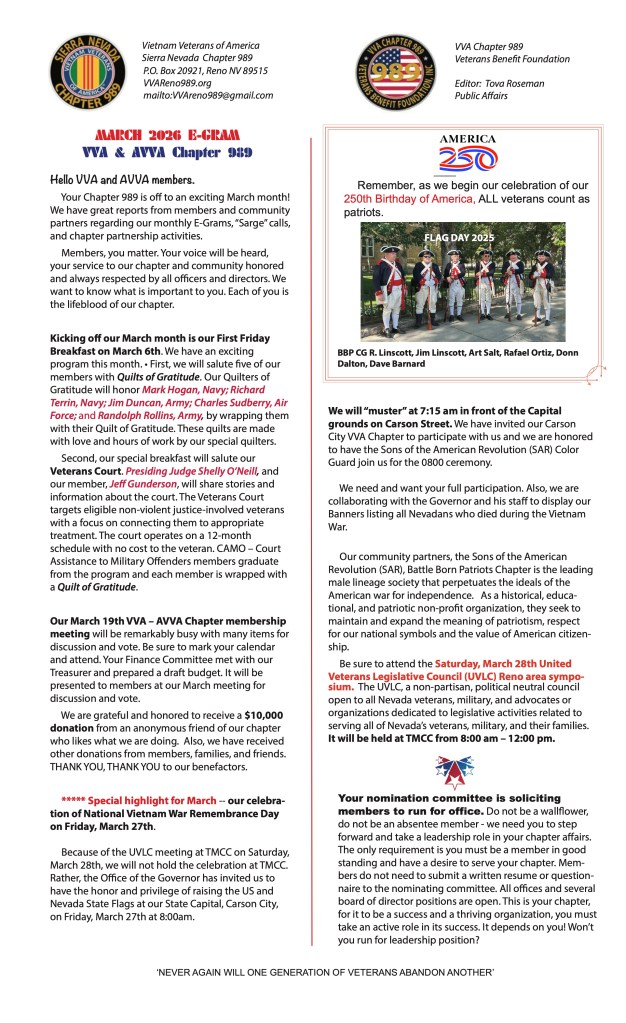 Vietnam Veterans of America Sierra Nevada Chapter 989 Reno, Nevada