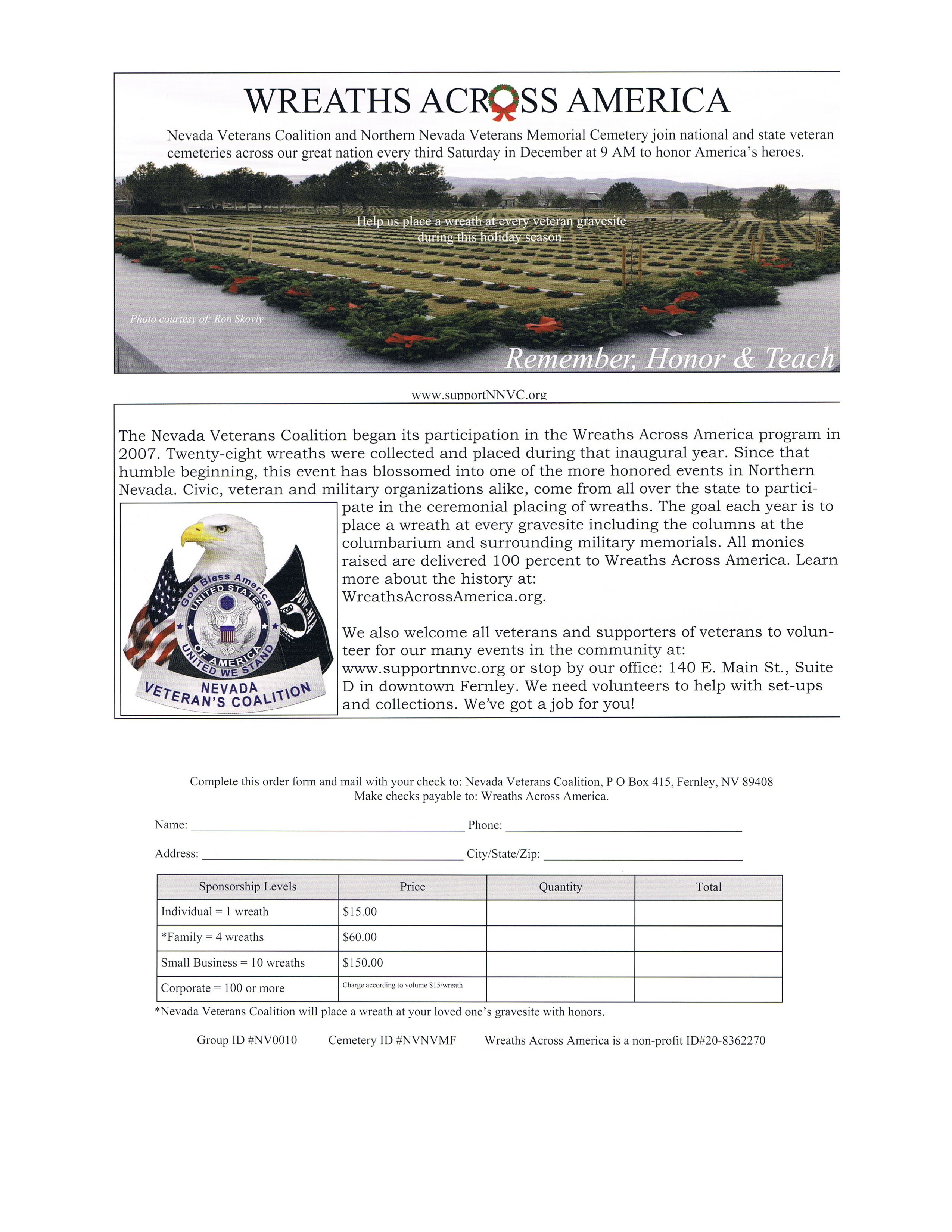 • Unaccompanied Service April 23, 2026 at 15:00 – 15:30 Northern Nevada Veterans Memorial Cemetery, Fernley • Info: www.supportnnvc.org