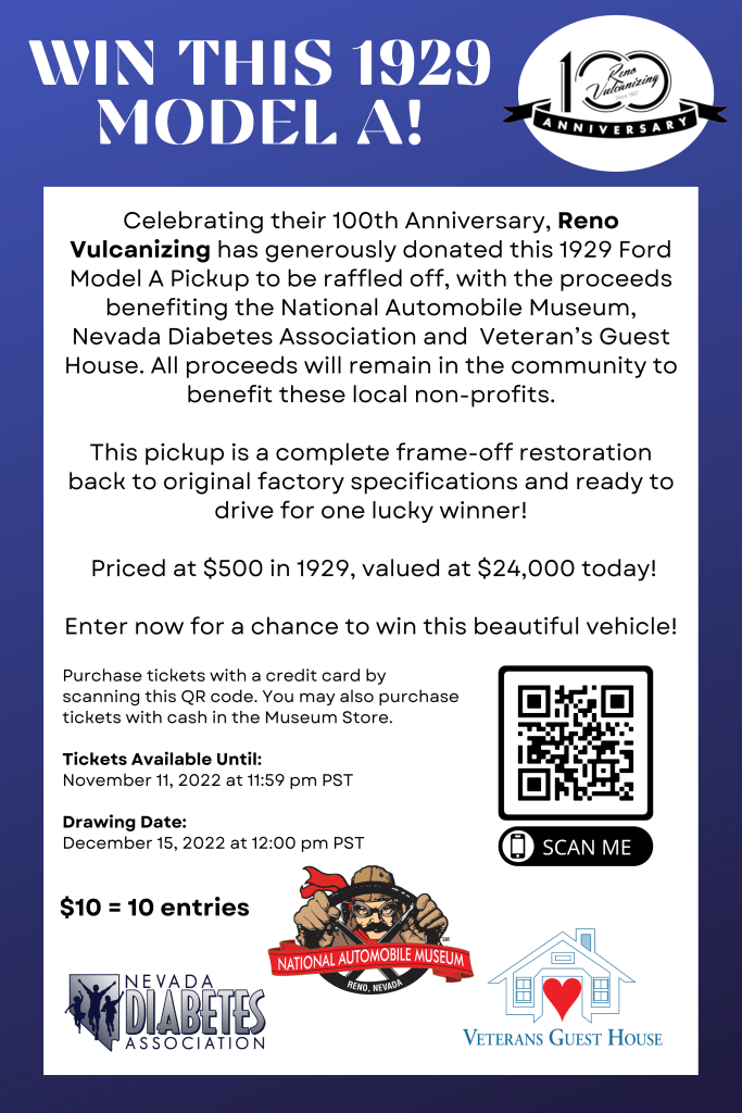Back ground on this raffle, Reno Vulcanizing is proudly celebrating our 100th Anniversary. This family locally owned business is one of the oldest in the state of Nevada. 2022 is the year we give back to the community that has supported us for the past century. We decided to secure a vintage era vehicle and provide it to 3 local charities for their benefit. I had been searching nationwide for the right vehicle and thought I had found one back east! Sweet free trip!! Well I received a email that was simply read. “I understand your looking for a Model A or Model T to purchase. My father had quite a collection, but had passed away earlier this year. We are liquidating his collection. We live in Northern Nevada if you would like to see it. BTW My father worked for Reno Vulcanizing in the 1950’s”