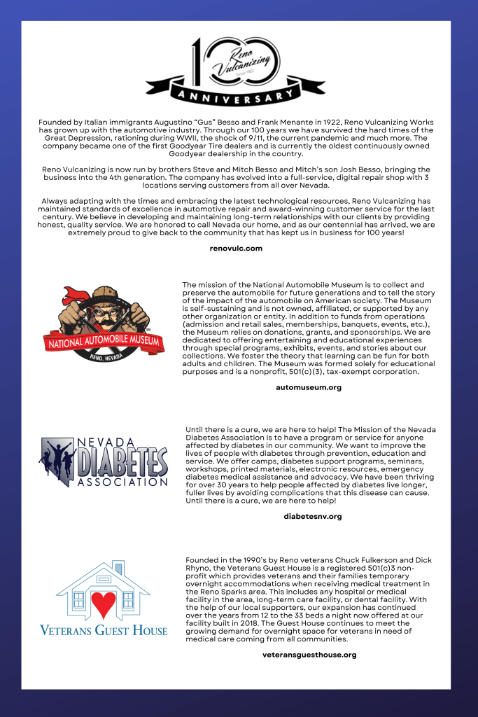 Reno Vulcanizing secured this vehicle and have provided it for 3 local charities to help support their programs.