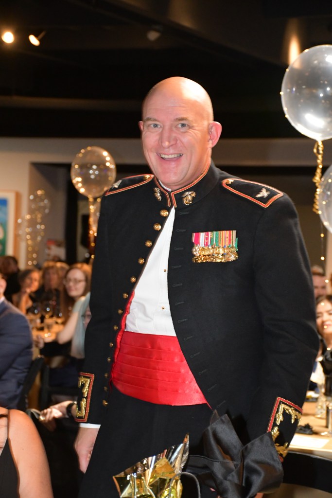 Emcee J. R. Stafford after the Pipe to the Evening Meal & Mess Call