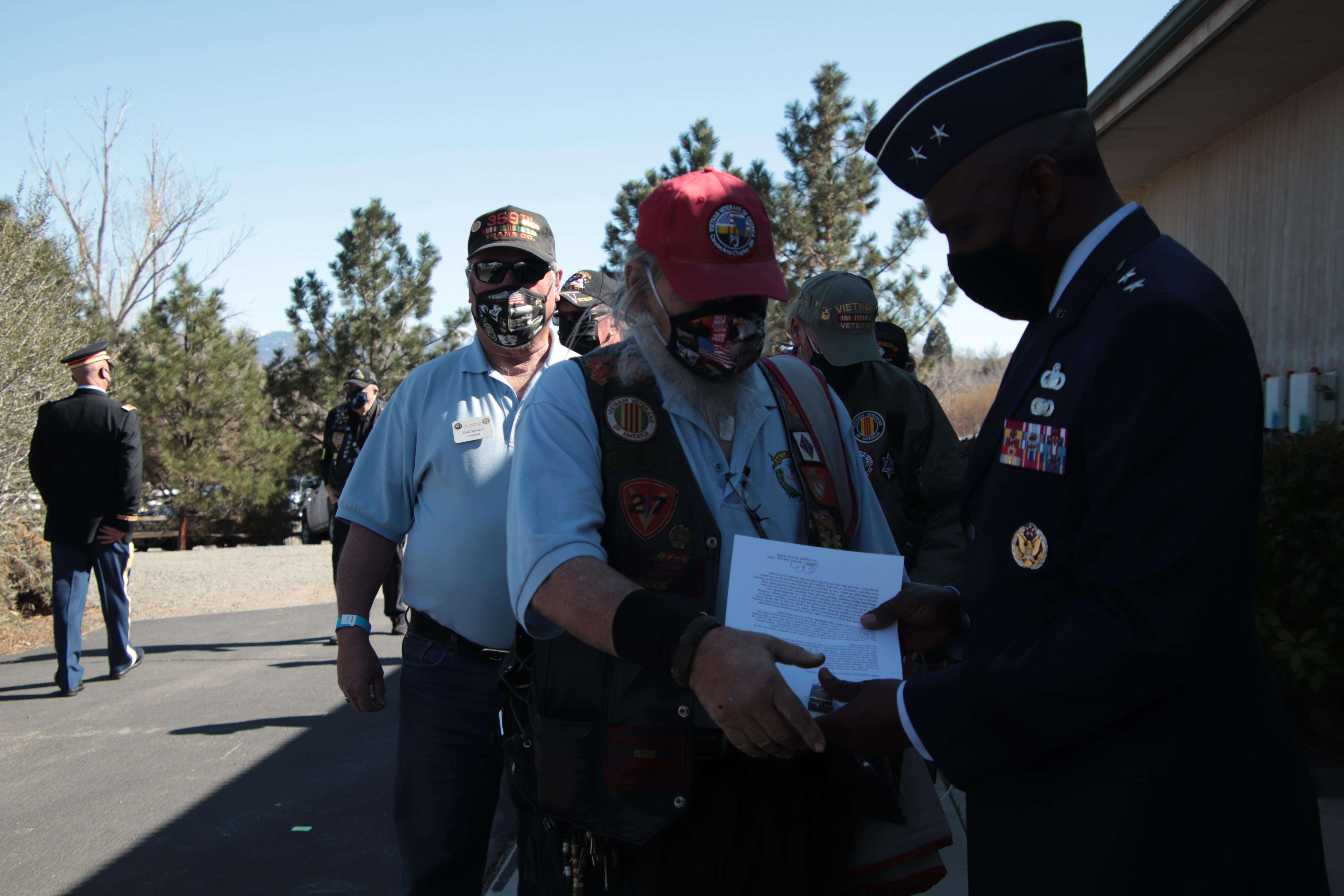 Vietnam Veterans receive DoD 50 year Commerative Pin from Major General Ondra Berry
