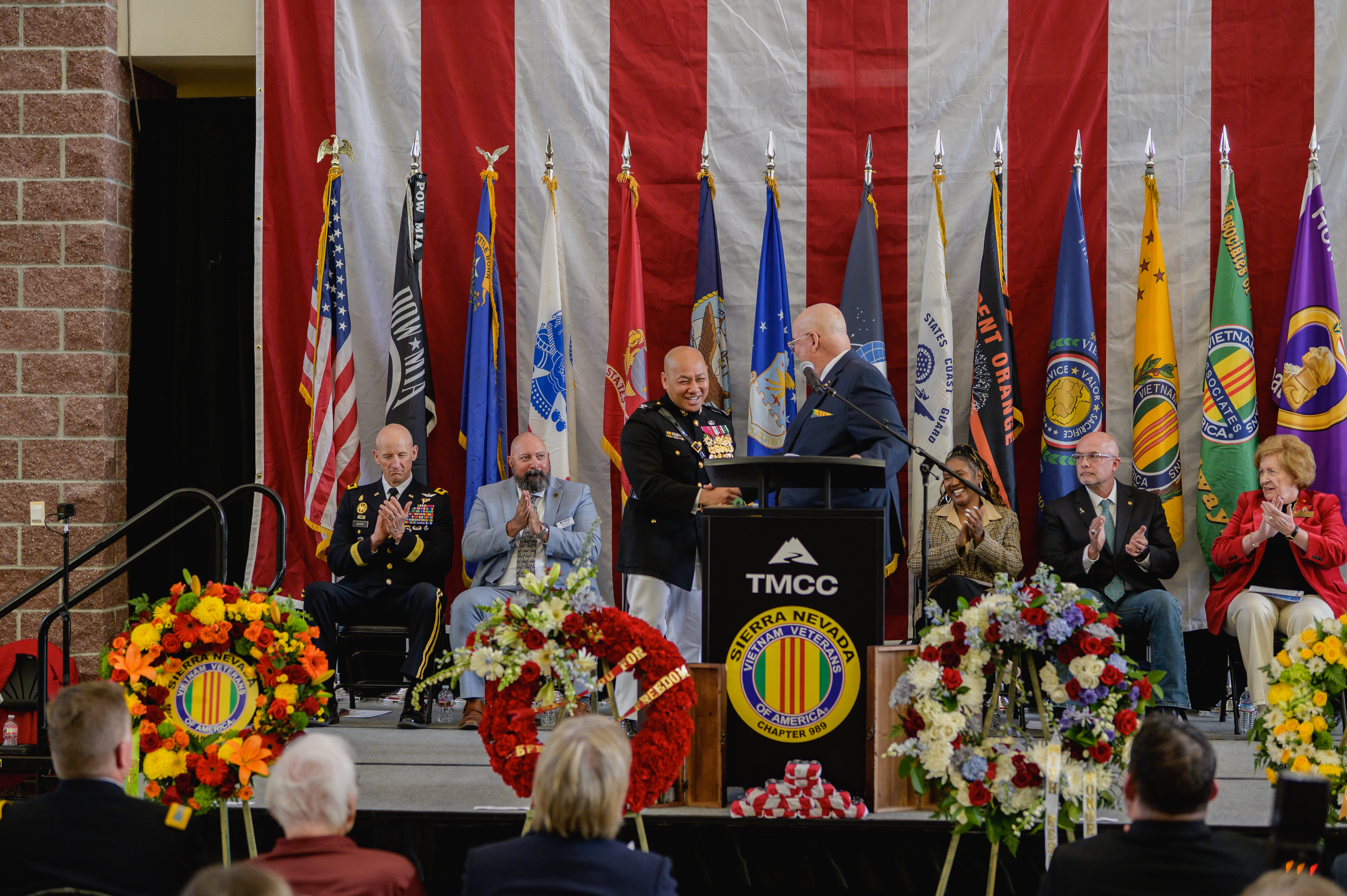 President Stafford welcomes featured Guest Speaker, Colonel Jackson Doan, Commanding Officer of the Marine Corps Mountain Warfare Training Center to the podium