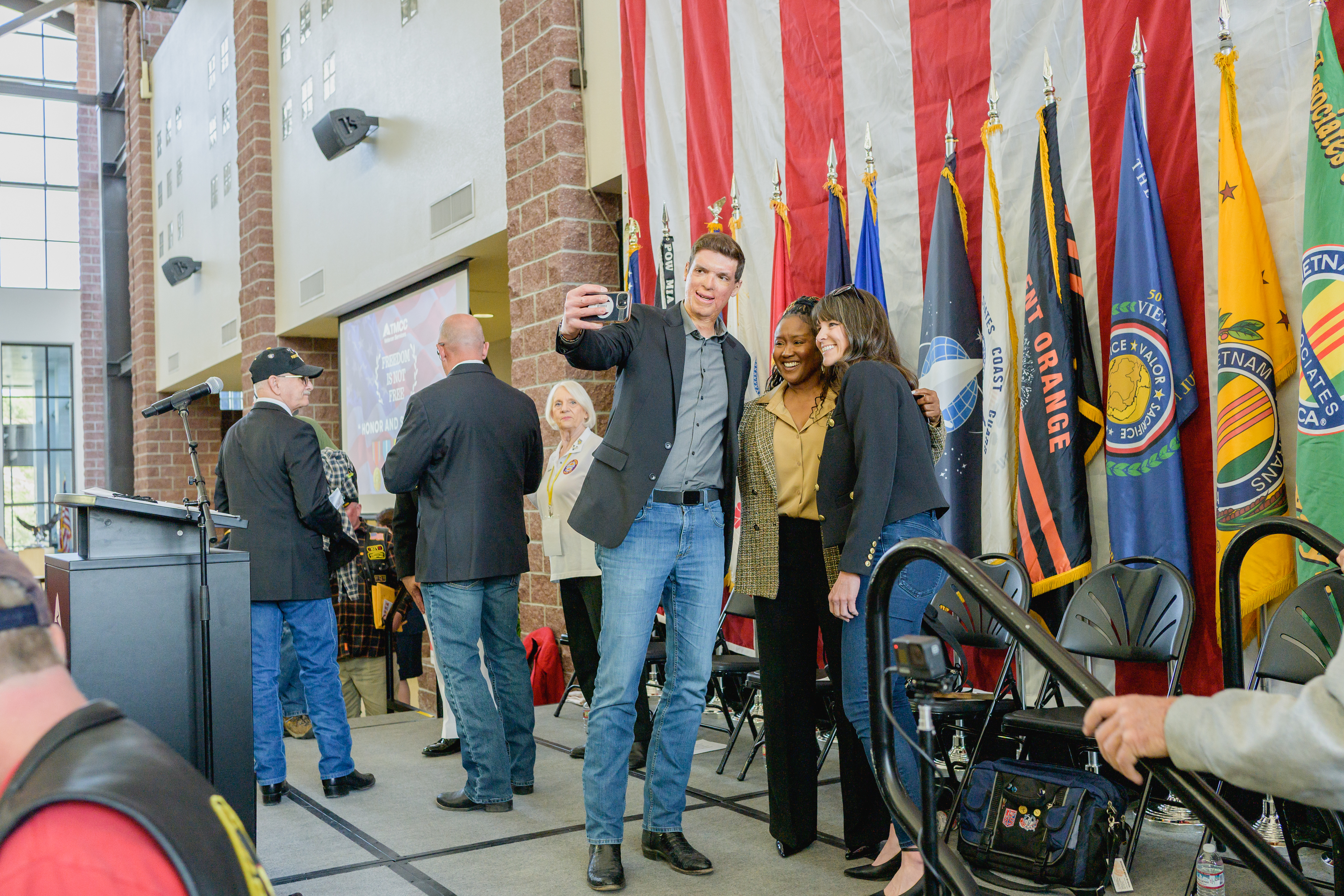 Captain(s) Sam & Amy Brown, US Army Veterans do a selfie with Dr. Spring Melody Myers