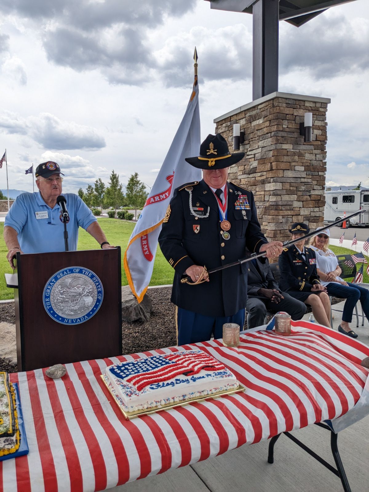 16. CSM prepares to cut the Flag Day Cake using his saber
