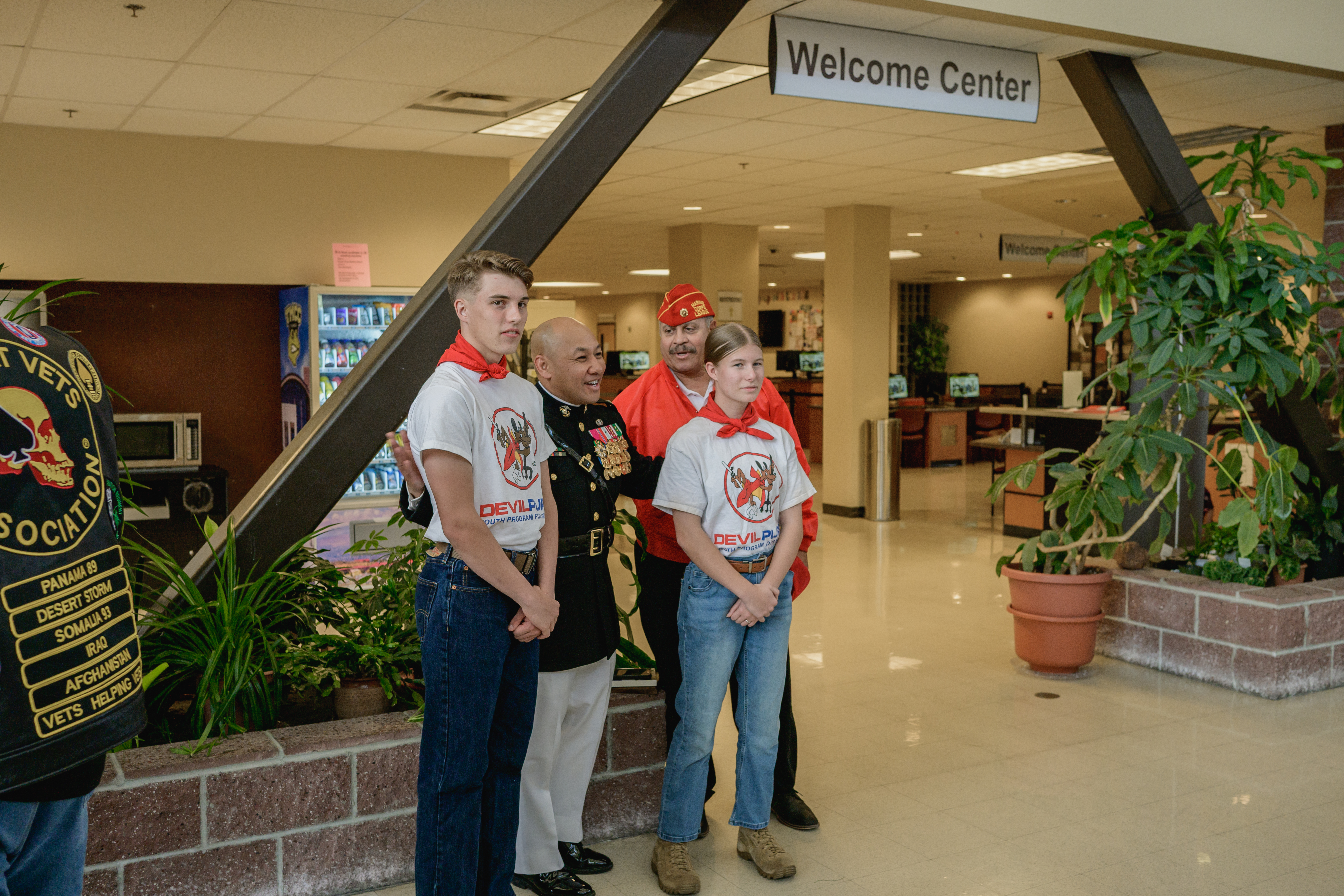 Members of the Devil Pups Youth Program with their leader, Lt. Karl Rodrigues and Colonel Doan