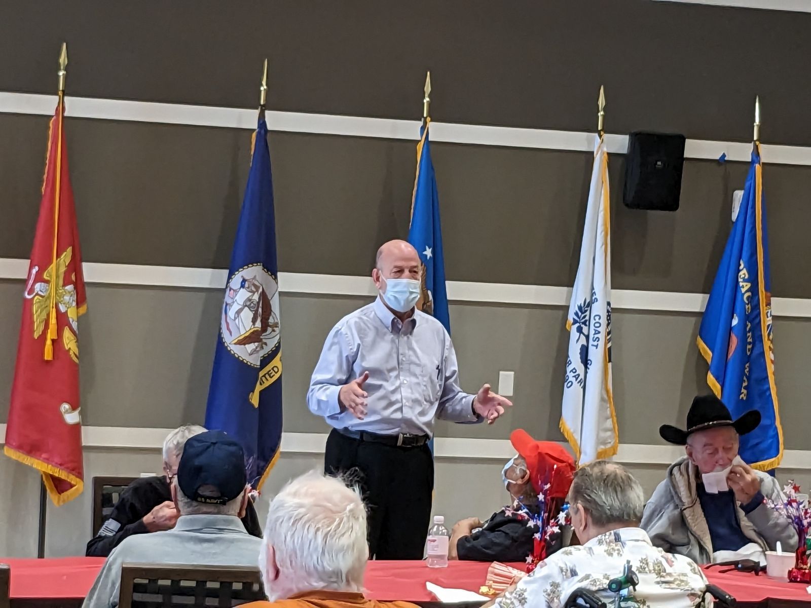 NDVS Director Fred Wager speaks to residents after the Ice Cream Social after 989’s annual Memorial Day cruise of the facility.