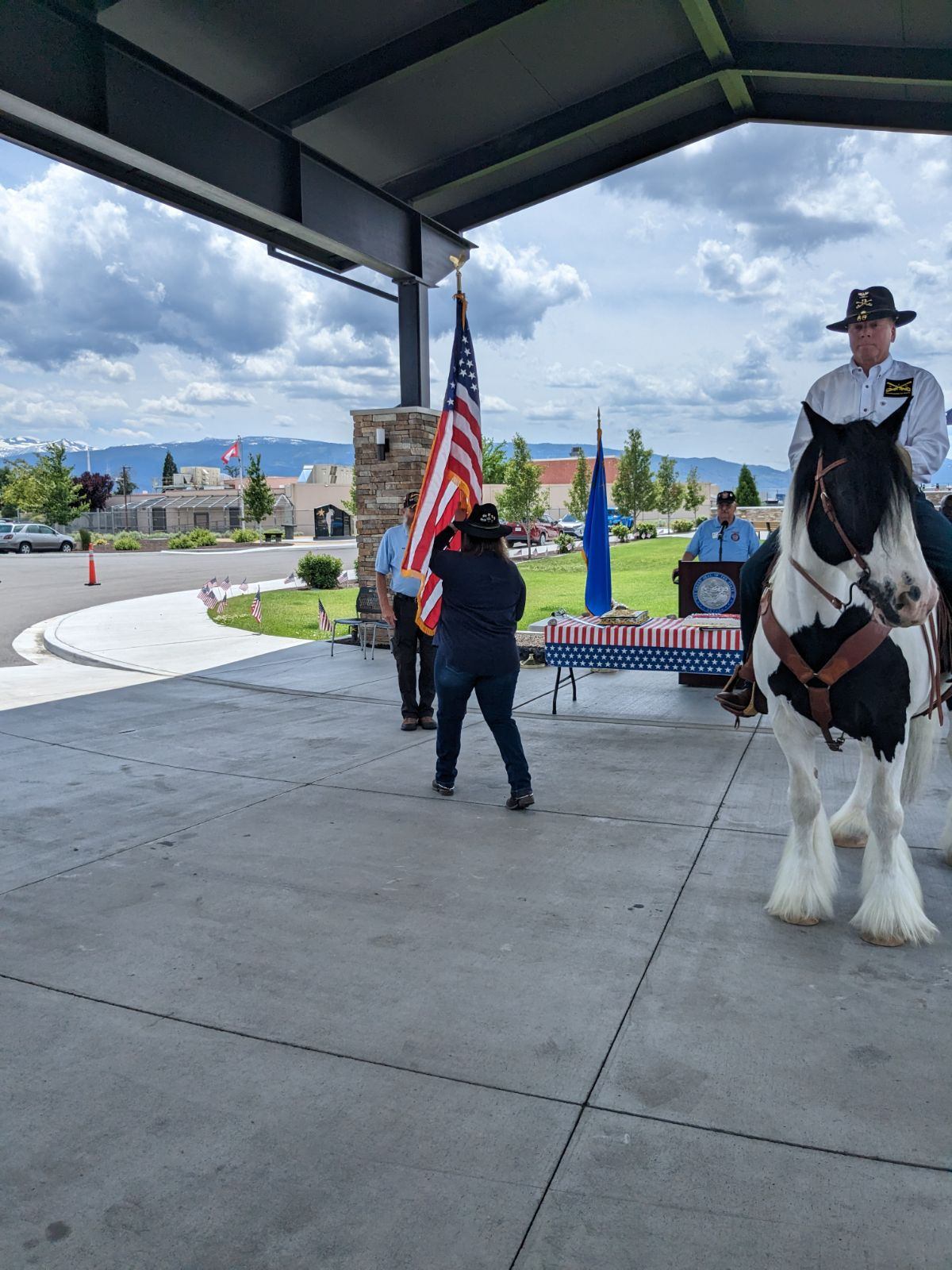 Color Guard in Action Colonel Scott Hooper on “Shahan” passed the American Flag to Colonel K. Hooper after the National Anthem. In turn the colors went to VVA 989 Color Guard Captain for posting.