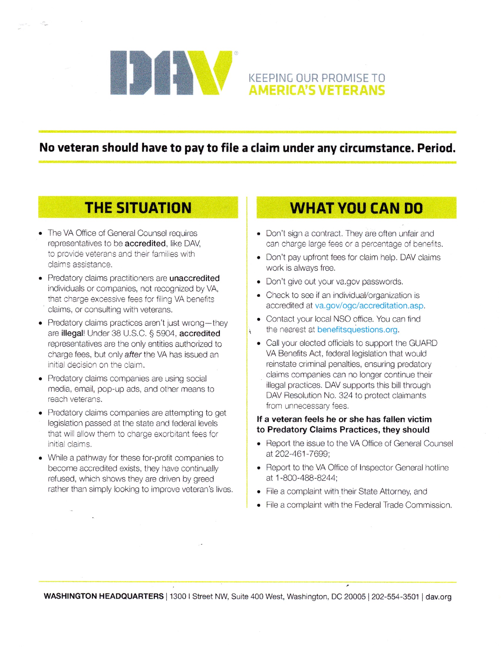 "Never again will one generation of veterans abandon another."