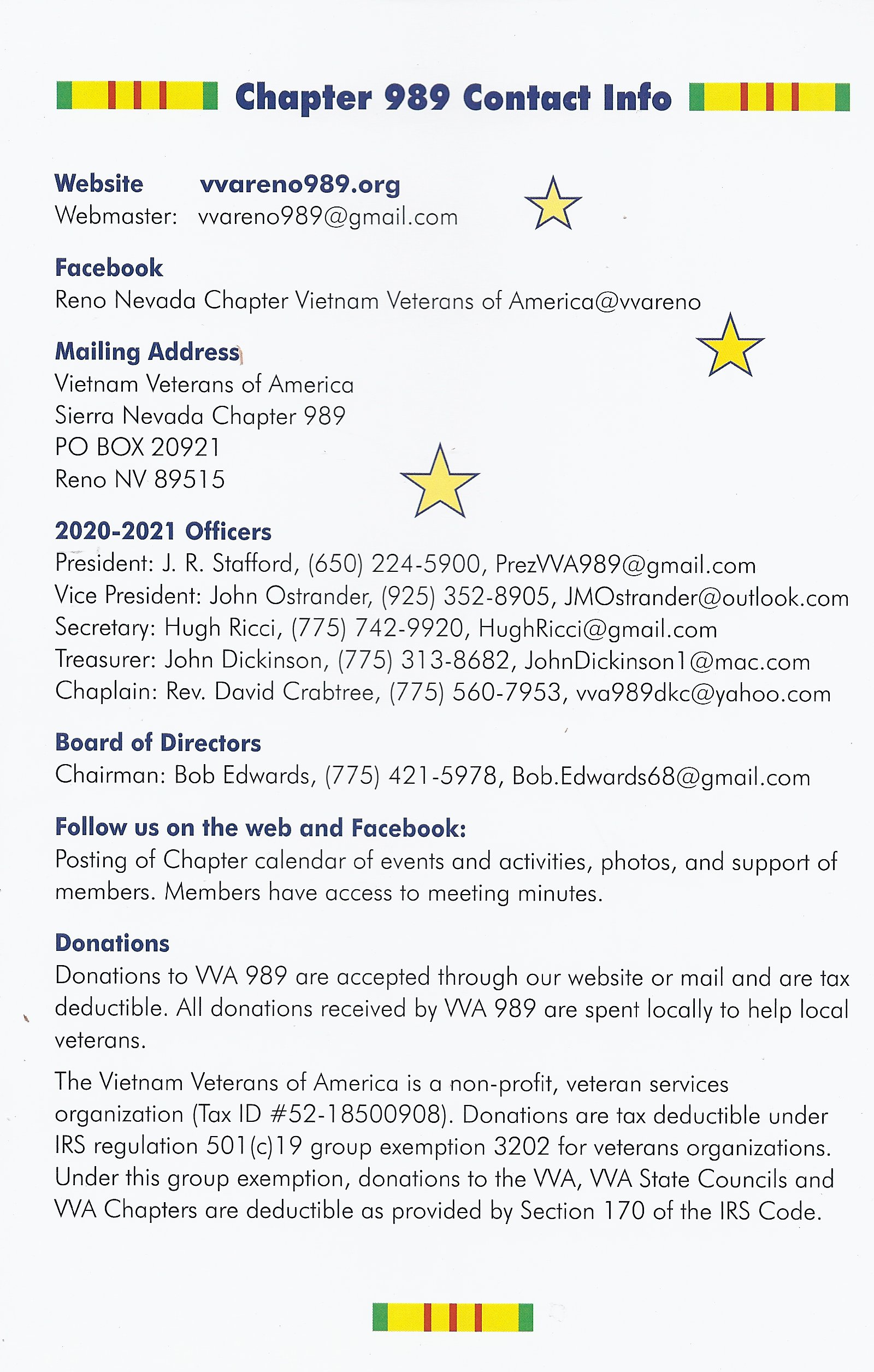 Vietnam Veterans of America Sierra Nevada Chapter 989 Reno, Nevada