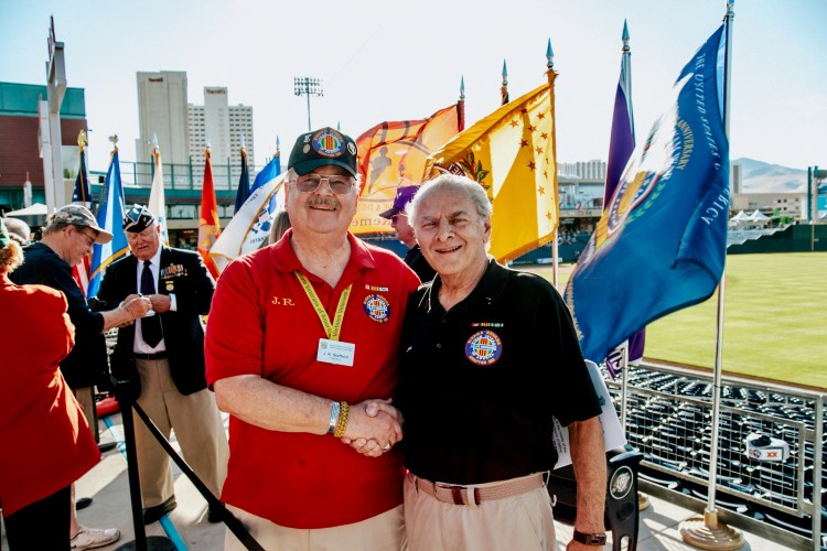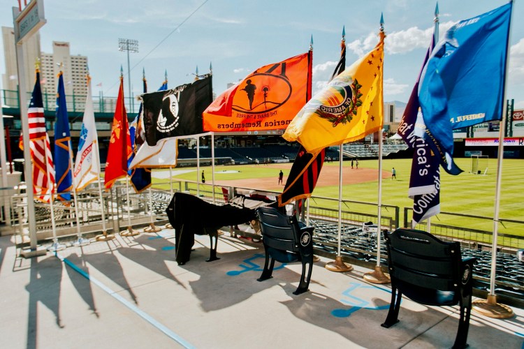 The highlight of the evening, though, takes place during the seventh-inning break.“We will be dedicating a POW-MIA (prisoner of war/missing in action) seat,” Jaenson said. “We’re working with Sierra Nevada chapter 989 of the Vietnam Veterans of America on that event and dedication,” she said. “We’ve asked the league for an inning extension in the seventh. We’ll set up all the flags, introduce guests, stop the game and read a plaque. Then we’ll sing ‘God Bless America’ going into the seventh-inning stretch.”J.R. Stafford, president of chapter 989, said he approached the Aces some time ago about dedicating a chair to the POW/MIA at Greater Nevada Field. “The Aces were very gracious wanting to do that,” he said. Stafford said the chair will be located in section 118. He said it will be an honor to recognize veterans, both living and present, and to remember those who were either captured by the enemy or were declared missing in action.