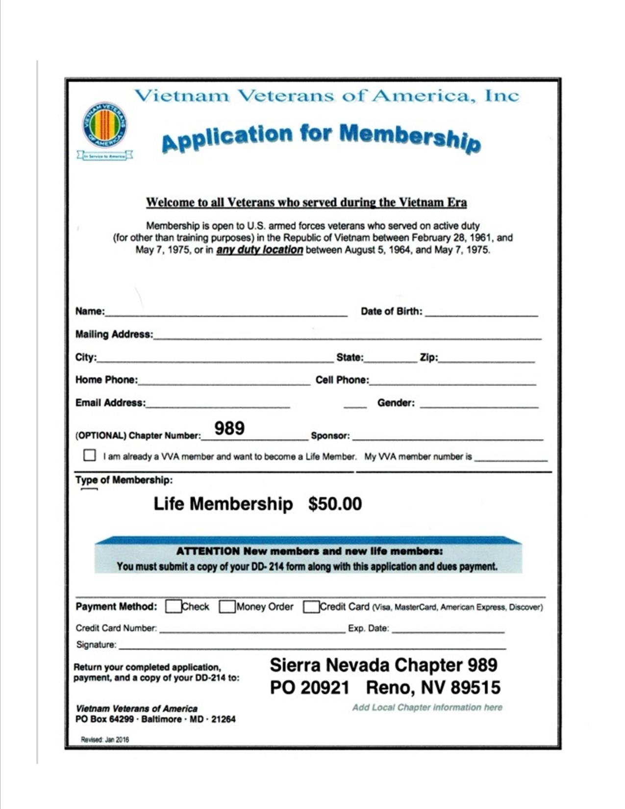 Vietnam Veterans of America Sierra Nevada Chapter 989 Reno, Nevada