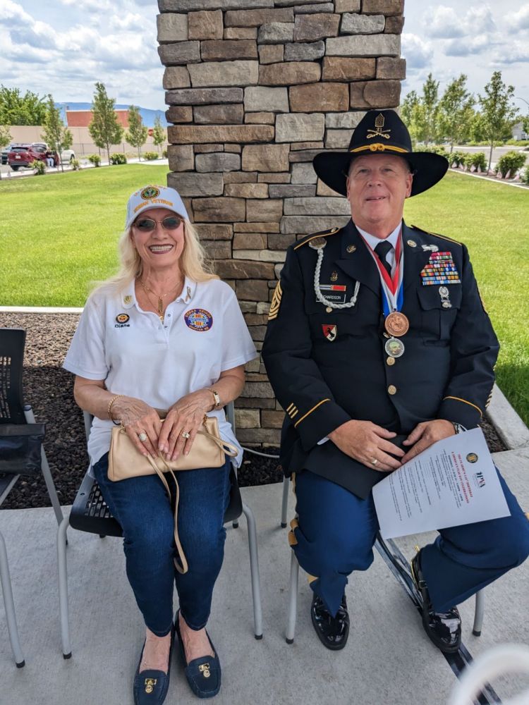 US Army veteran and AVVA member, Diane Glass sits with CSM Jim Richardson prior to the celebration.