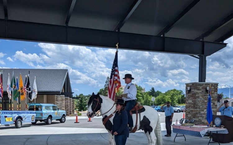 Vietnam Veterans of America Chapter 989 hosted a celebration for the 248th Army’s Birthday and Flag Day at the Northern Nevada State Veterans Home, Sparks Nevada. The event included displays of vintage military vehicles provided by The National Automobile Museum -The Harrah Collection, the Chapter 989’s Color Guard “Signature” Flag Trailer. A Mounted Flag presentation by Horsemanship for Heroes helped start the salute. The distinguished guest speakers included Colonel Carolyn Hooper U.S. Army (retired). Command Sgt. Maj. James Richardson US Army (retired). CSM Richardson read a poem honoring “Old Glory” the US Flag. The poem is called – I AM THE FLAG – Note- Tap on RED to open webpage link for poem.