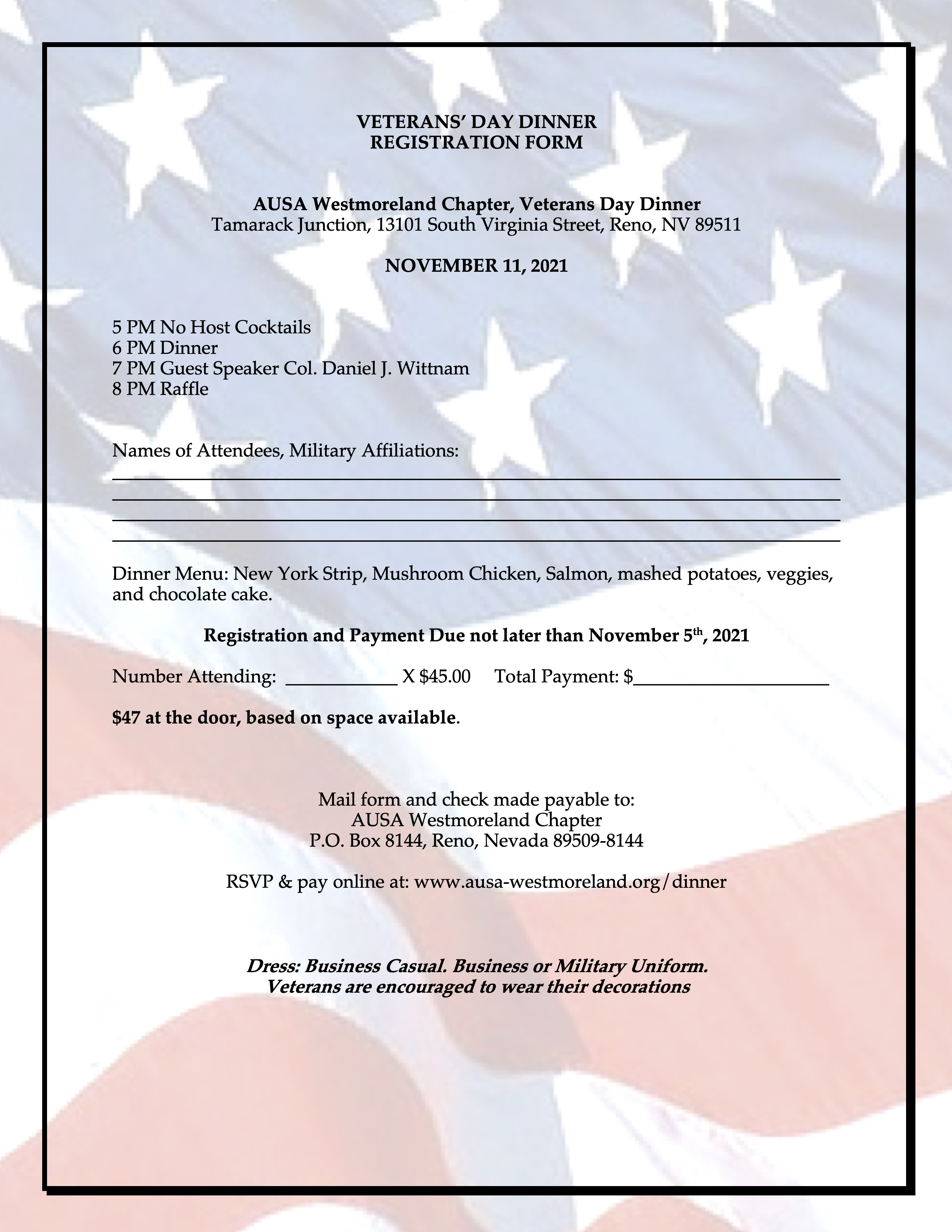 • Memorial Day Ceremony May 25, 2026 at 11:00 – 12:30 Northern Nevada Veterans Memorial Cemetery, Fernley • ALL WELCOME • Info: www.supportnnvc.org