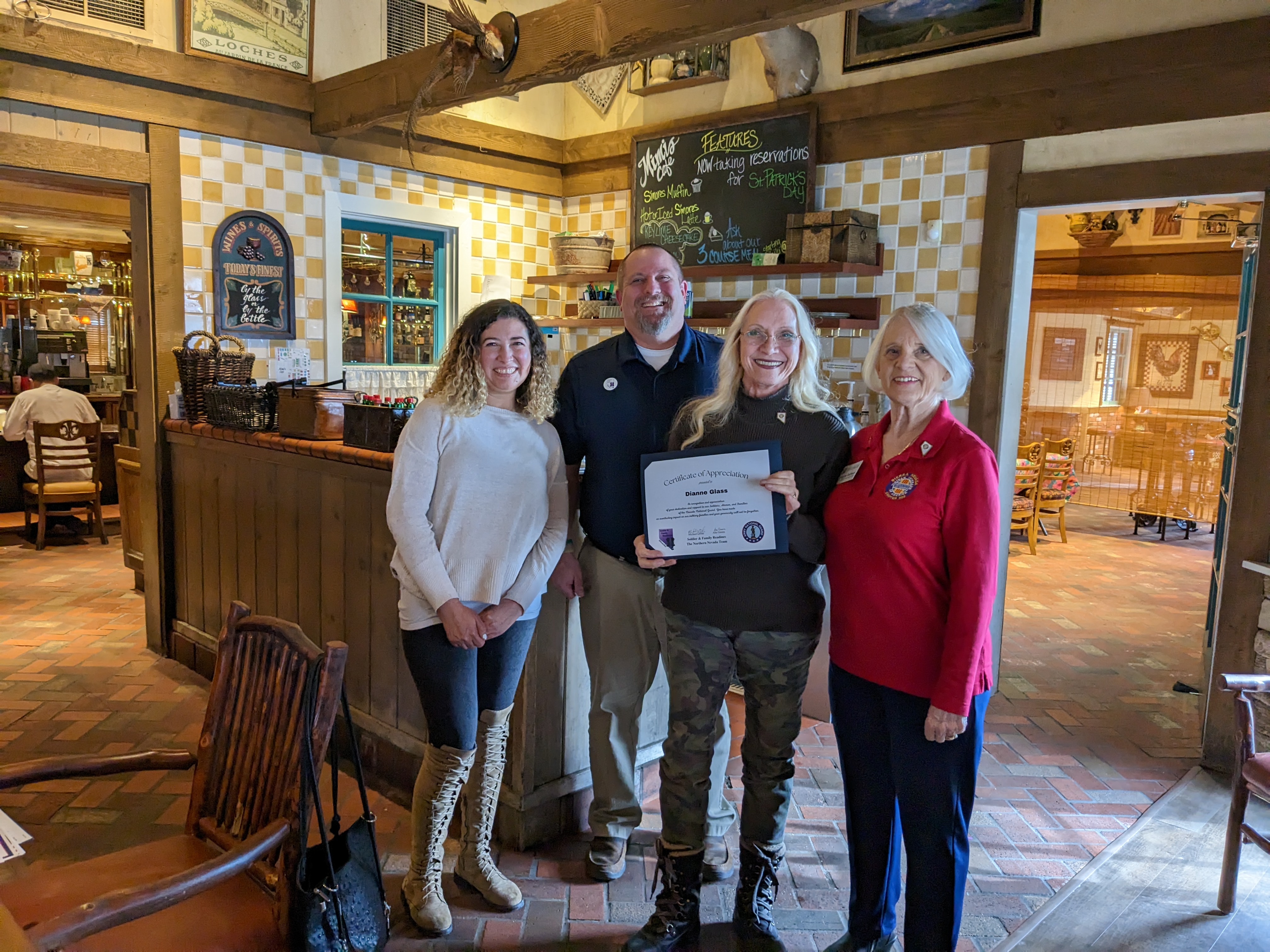 Certificate of Appreciation recipient Diane “Well Done “