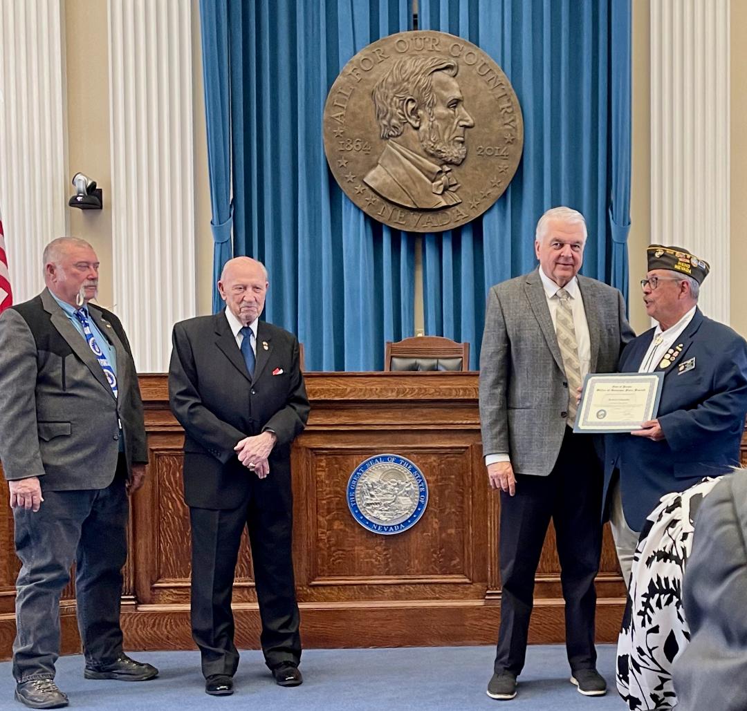 During the special ceremony held inside the Old Assembly Chamber in Carson City U.S. Army veteran Andy LePeilbet received two special honors and recognition last month. LePeilbet was named Veteran of the Month (VOM), and he also received a second Silver Star for gallantry in action in the Vietnam War. Governor Steve Sisolak noted the many affiliations and work of LePeilbet to benefit Nevada’s veterans and military members.