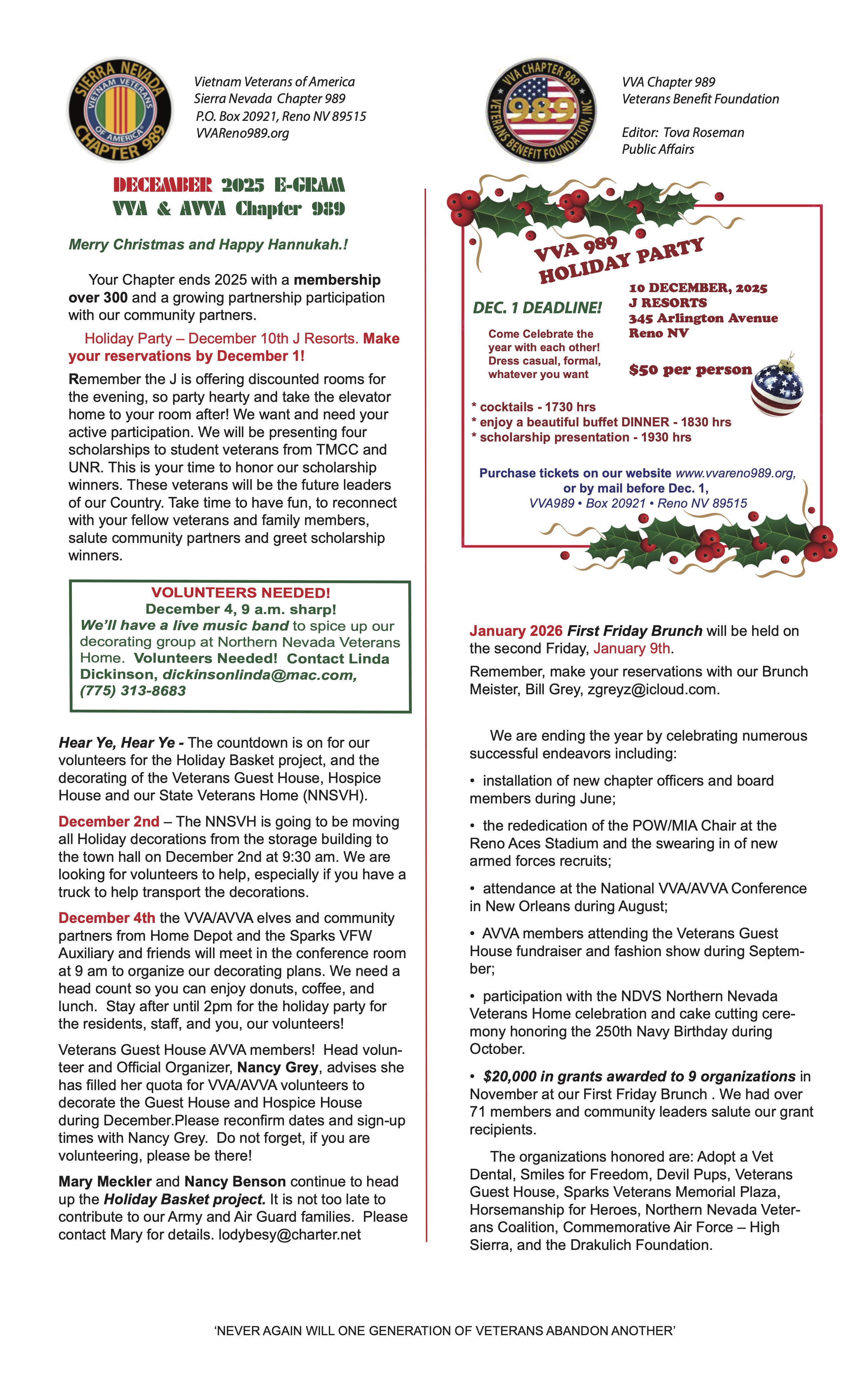Vietnam Veterans of America Sierra Nevada  Chapter  989   Reno, Nevada