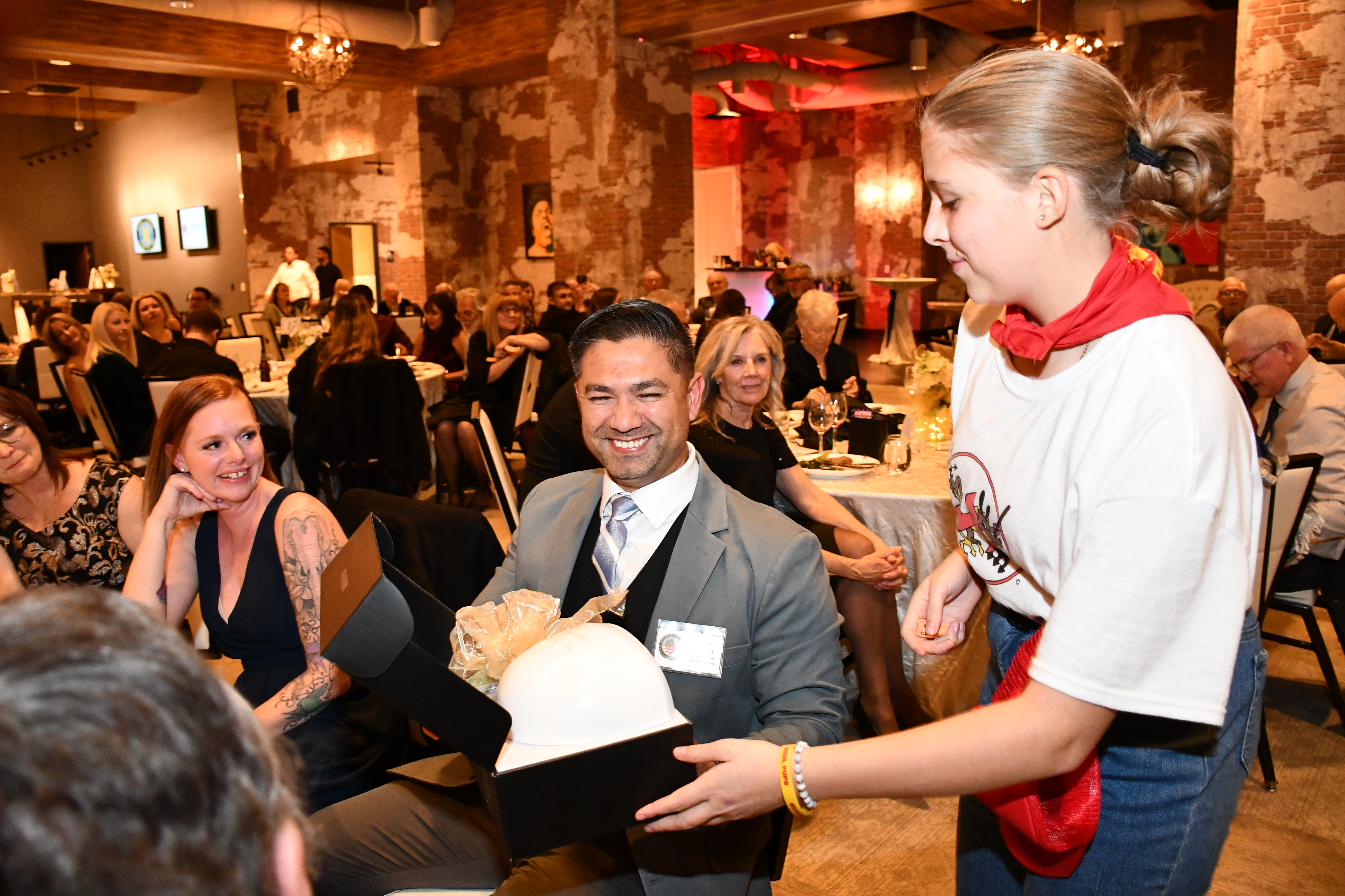 Roger Gahan (UNR’s Scholarship Winner) receiving an auction item.