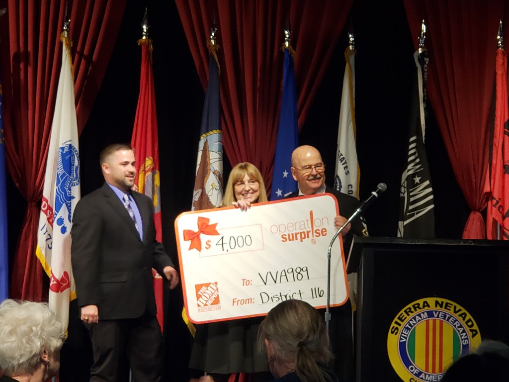 At long last, the Vietnam Veterans of America – Sierra Nevada Chapter 989 Scholarship Gala opened to cocktails and anticipation of the fun to come. Attendees took part in a raffle and silent auction which included wine gift card to Ruth’s Chris Steak House and an antique child’s police car with a certificate for Dunken Donuts.
