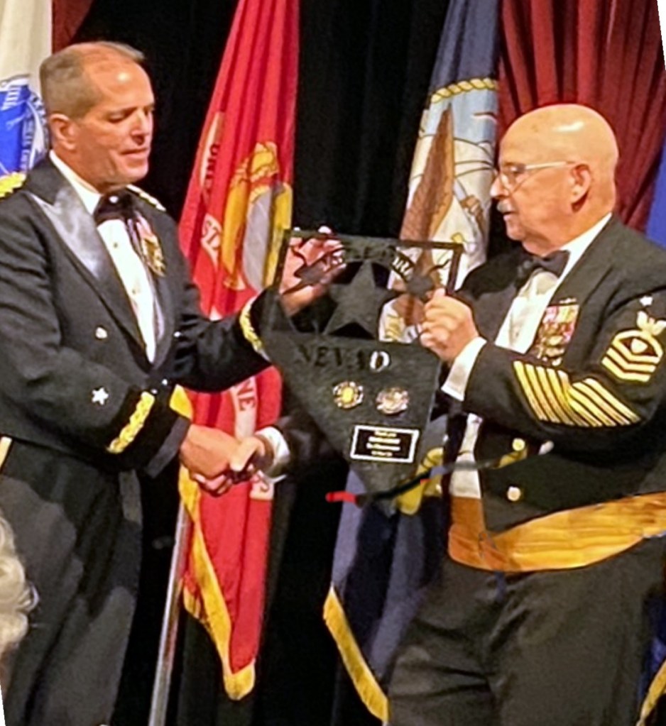 J. R. Then introduced the VVA 989 Head Table saying we were honored to have Colonel Danial Wittnam, Commanding Officer of the Marine Corps. Mountain Warfare Training Center at Bridgeport, CA and his wife Mimi join us. The Commanding Office of Naval Air Station Fallon, NV, Captain Evan Morrison and his wife, Lynn… (who somehow were moved into the audience) by were recognized and honored for attending. Our guest speaker, Brigadier General Zackary Doser and his wife, Martain Doser were also introduced.