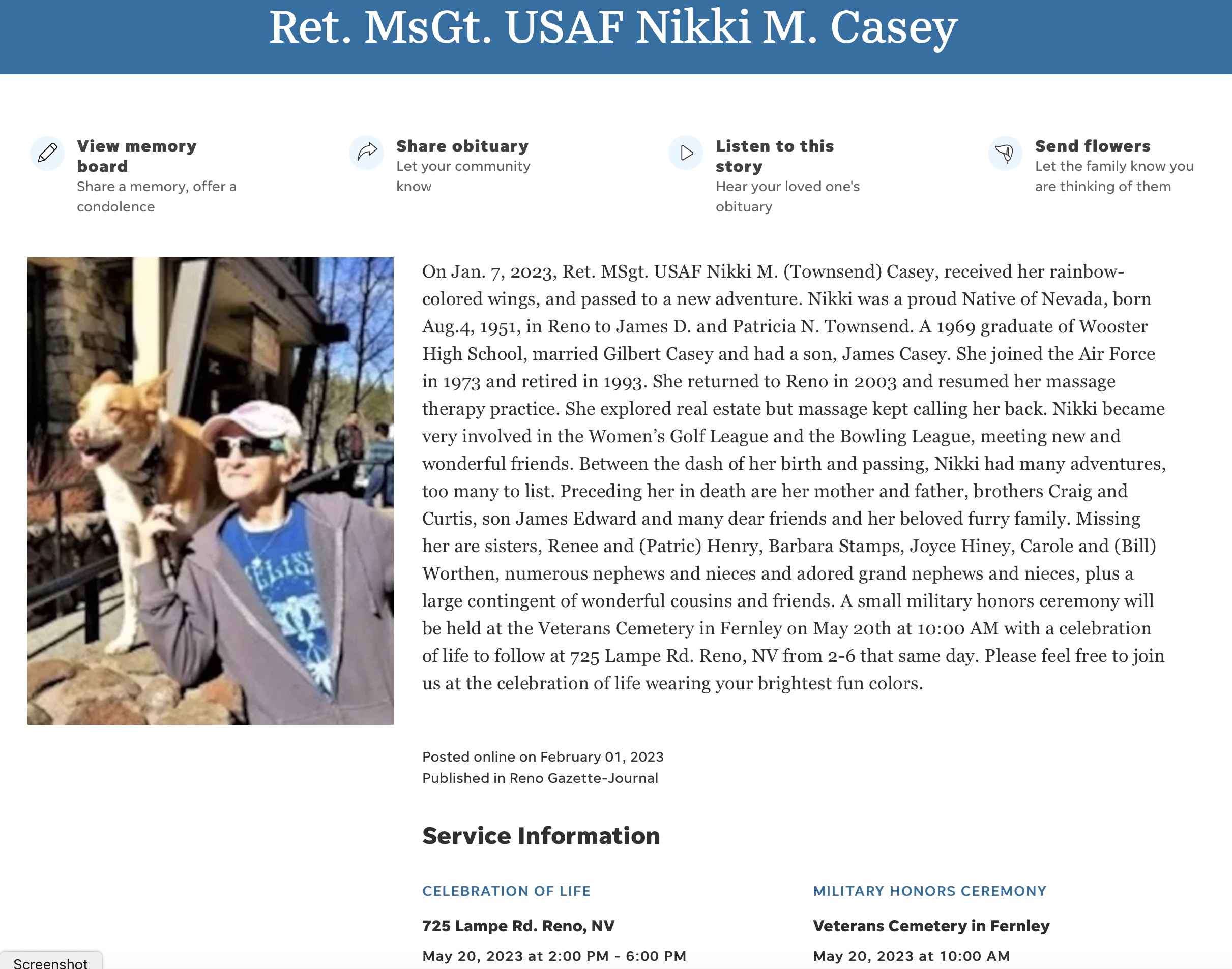 • Unaccompanied Service April 23, 2026 at 15:00 – 15:30 Northern Nevada Veterans Memorial Cemetery, Fernley • Info: www.supportnnvc.org