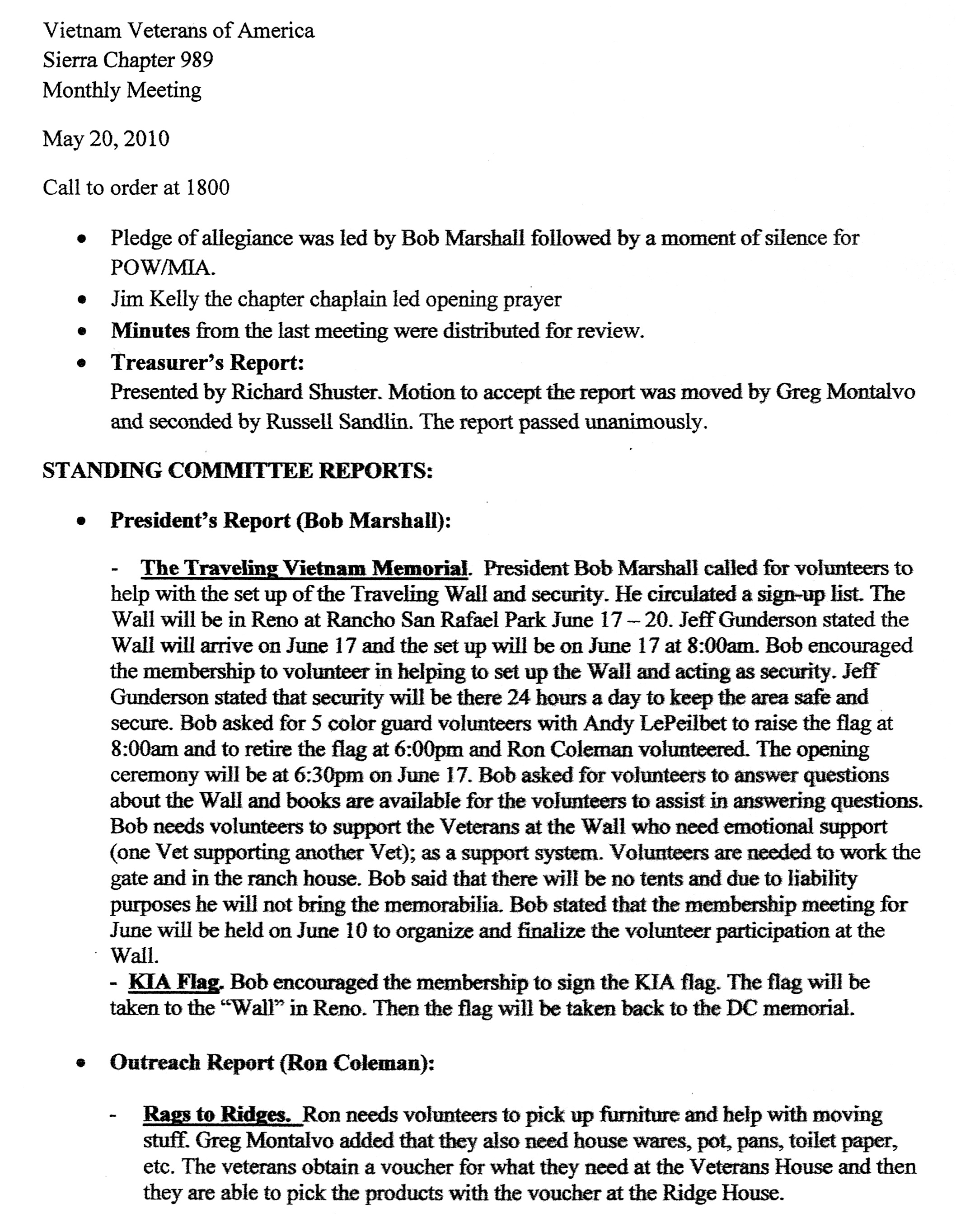 Vietnam Veterans of America Sierra Nevada Chapter 989 Reno, Nevada