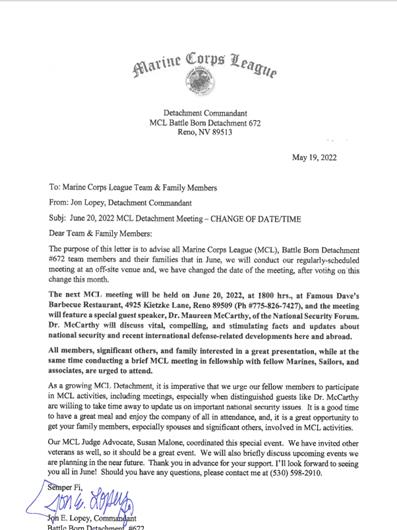 • **NEW LOCATION** VVA & AVVA 989 Chapter Meeting May 21, 2026 at 14:00 – 16:00 American Legion Hall Post No 30n730 Fourth St, Sparks, NV 89431, United States