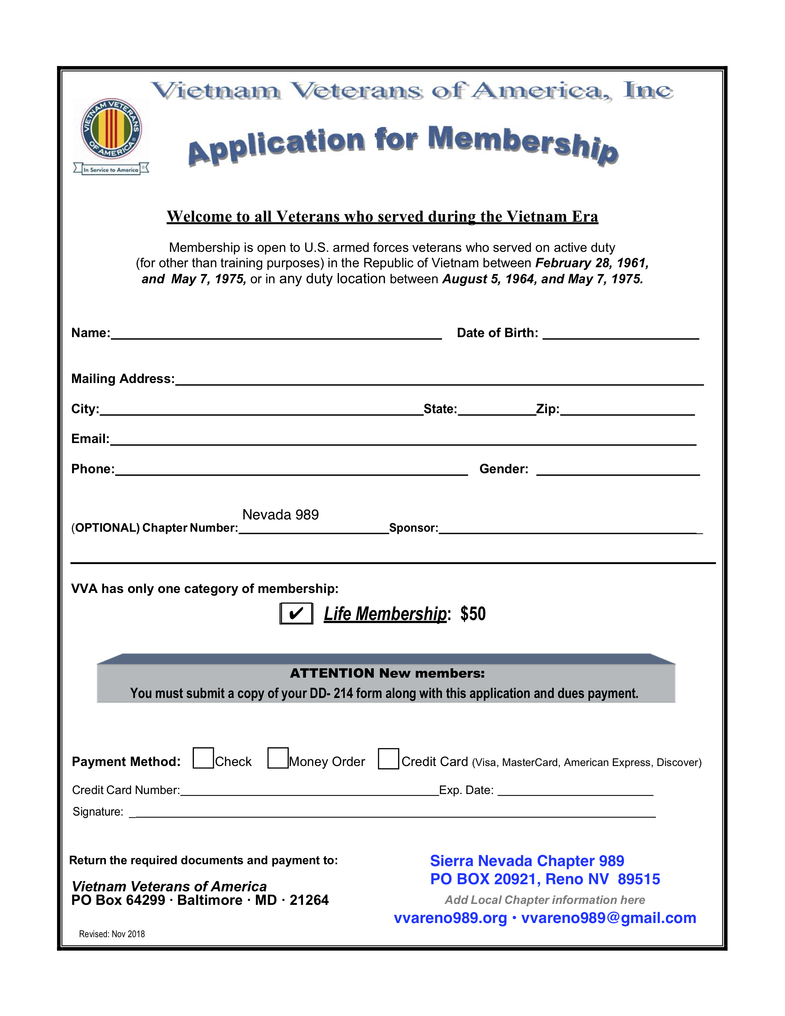 Vietnam Veterans of America Sierra Nevada Chapter 989 Reno, Nevada