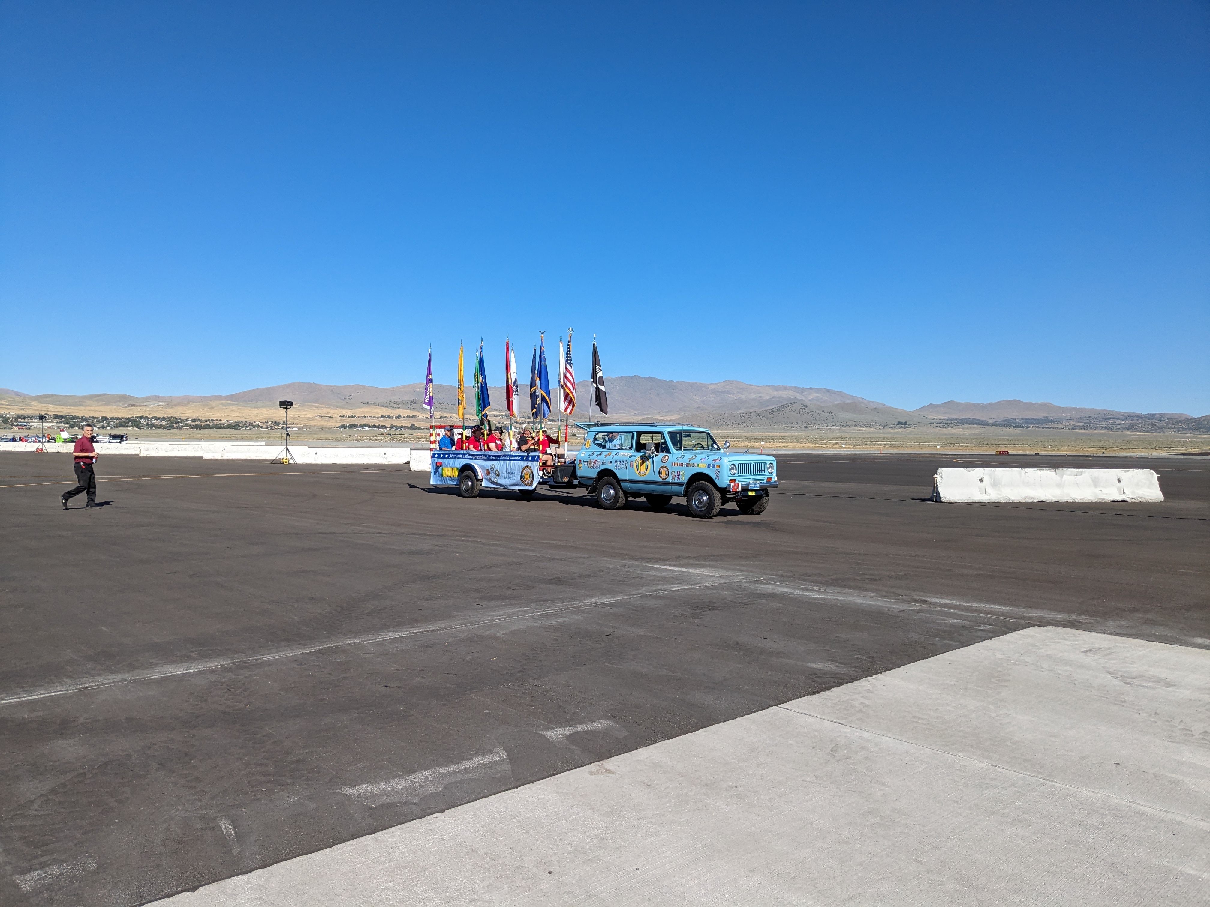 It was lonely on the tarmac all by ourselves, but we were shortly joined by a Mens Singing Group, the JROTC from Galena HS with the Colors, A group of “re-enlistees and one new enlistee” from the NVNG, and the Board of Directors of the Air Races.