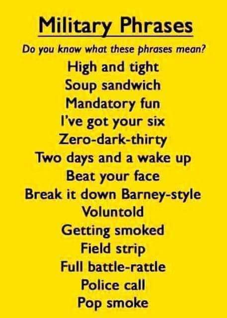 * We speak highly of our own branch of service, and poke fun at the other branches.