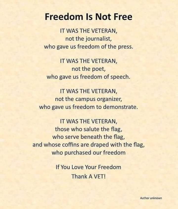 * Being a Veteran is something that has to be earned and it can never be taken away.