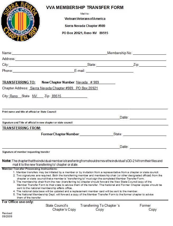 VVA Transfer Form