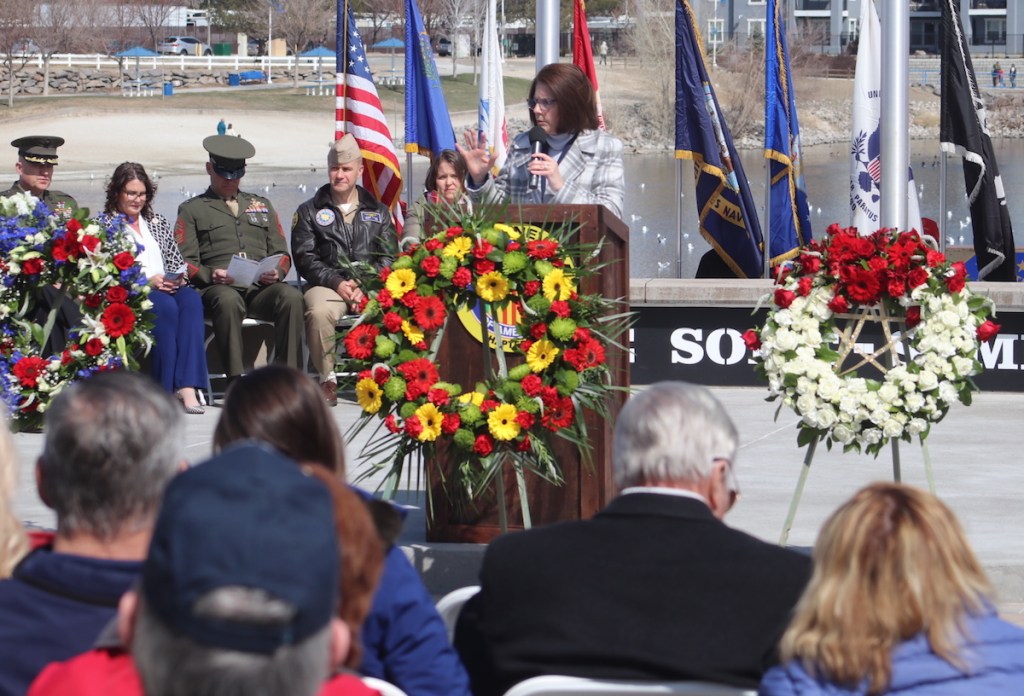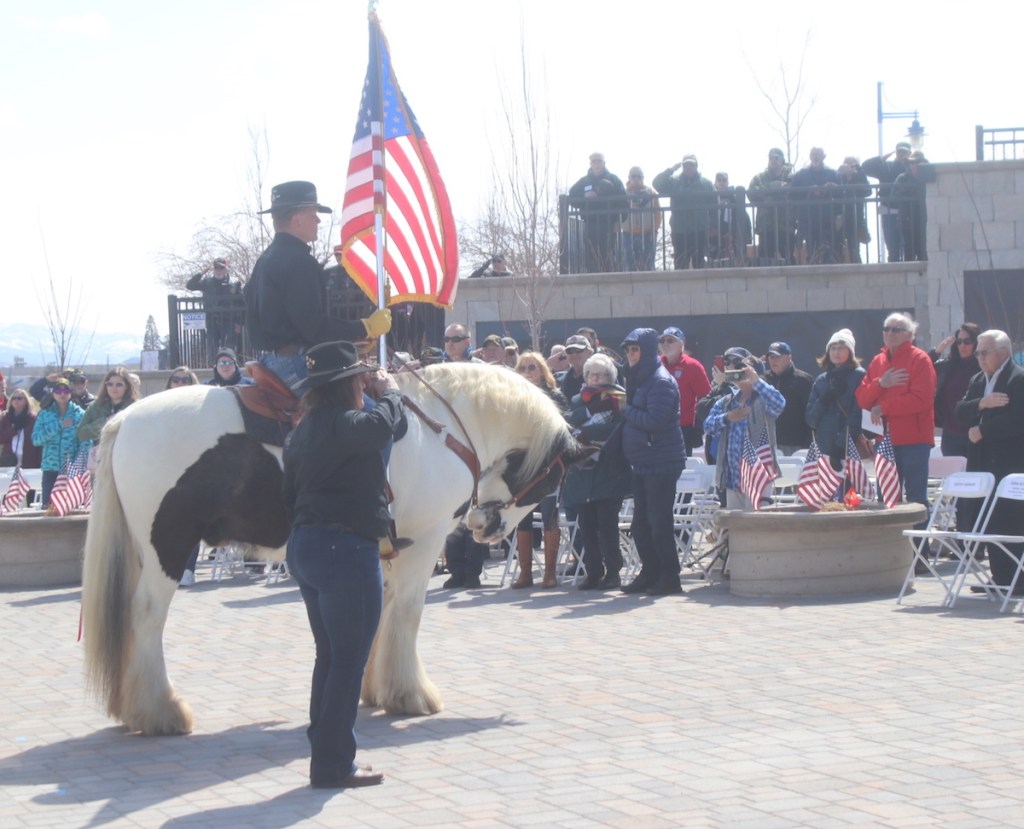 (Sparks, NV 25MAR23) The first of what is hoped to be many veterans related events held at the newly opened Nevada Veterans Memorial Plaza, (NVMP) was put on by Vietnam Veterans of America – Sierra Nevada Chapter 989, (VVA 989). Several hundred veterans, family members and supporters of veterans enjoyed an uplifting tribute to Vietnam Veterans in the concluding years (Memorial Day 2012 through Veterans Day 2025) of the 50th Year Commemorative recognition of the Vietnam War. Those who had “gone before” and those that followed in Iraq and Afghanistan were also honored as were all veterans. Gold Star Families were also honored for their losses over the years.