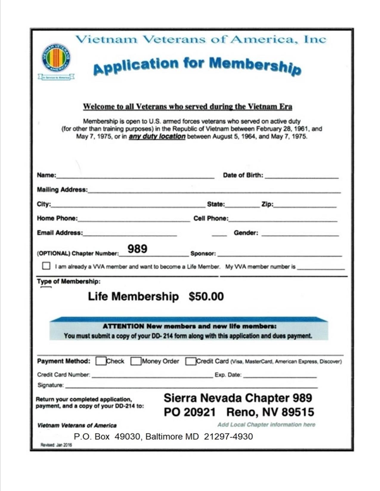 Vietnam Veterans of America Sierra Nevada Chapter 989 Reno, Nevada