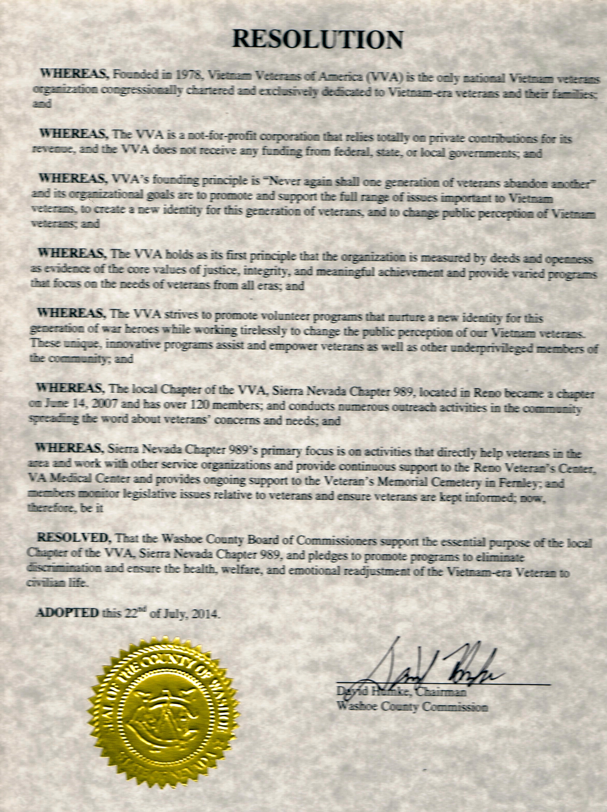 Vietnam Veterans of America Sierra Nevada Chapter 989 Reno, Nevada